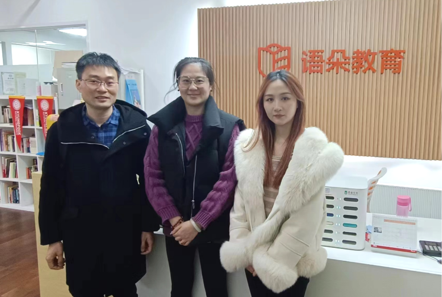图为日语系主任方飞卡走访语朵教育