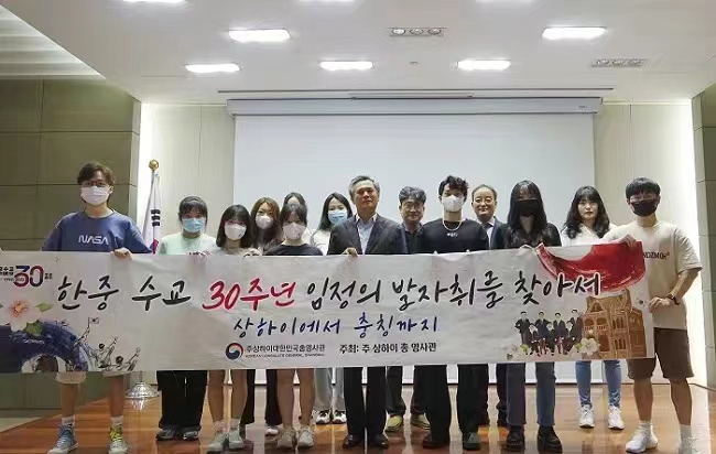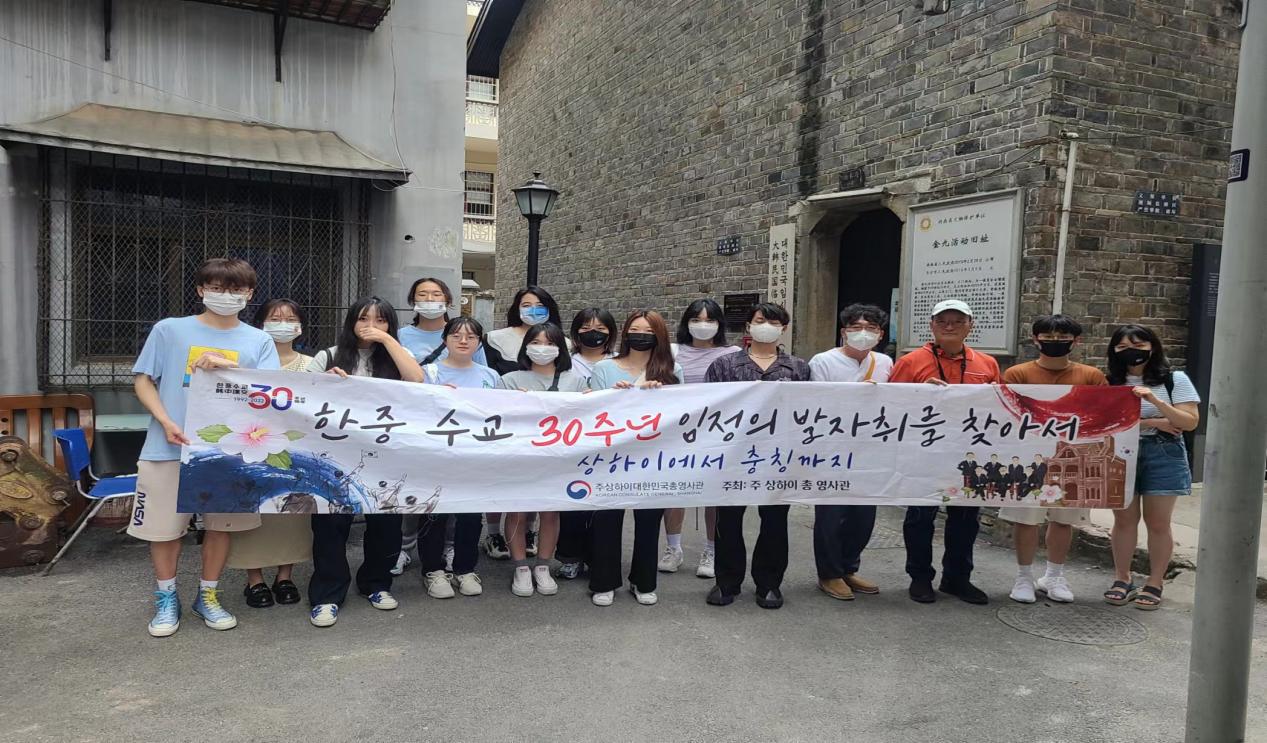 2022年8月29日,12名中韩青年大学生从大韩民国驻上海总领事馆出发前往长沙、杭州、海盐等地开启了为期五天四夜的历史探访活动。杭州大韩民国临时政府、海盐金九避难处、湖南湘雅医院,尹奉吉义举旧址,中韩建交30周年之际,两国青年跟随前人脚步,跨越时间的长河再次回望历史。
