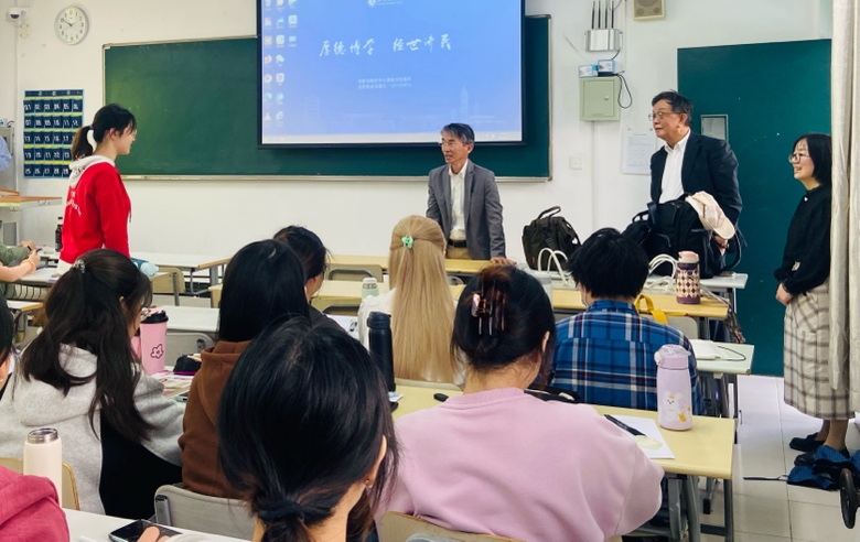 交流谈结束后,大桑和雄一行三人与日语大二学生举行了见面会,向同学们介绍了北陆大学的特色项目及优势,鼓励同学们提升语言水平、培养跨文化交际能力,并通过国际交流项目开拓国际视野。