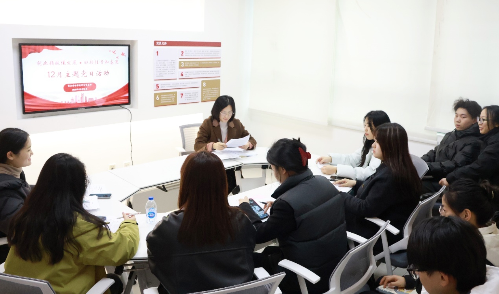 深入学习贯彻党的二十届三中全会精神,强化党建引领,12月10下午,商务外语学院学生党支部于行政楼413党员活动室开展主题党日活动。支部全体党员参加活动,活动由支部书记杨悦主持。
