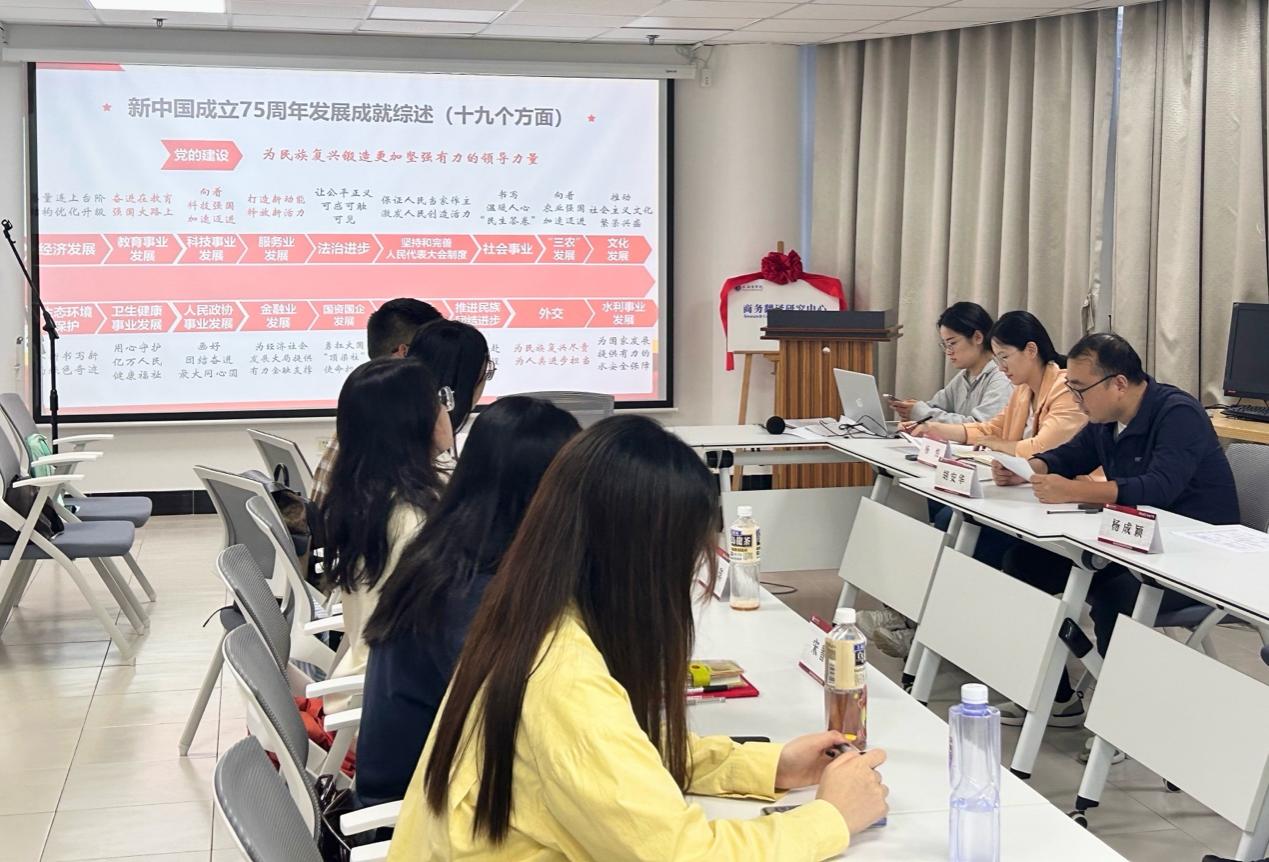 活动伊始,全体师生党员集中学习了新中国成立75周年发展成就综述。风雨兼程,春华秋实。75年来,在中国共产党的坚强领导下,我国经济规模连上台阶,高质量发展扎实推进,人民生活水平持续提升,综合国力实现历史性跃升。支部书记杨悦重点领学了教育事业发展、科技事业发展、外交等方面内容。通过深入学习,支部成员更加清晰地认识到在新时代背景下,教育事业关乎民族未来,科技事业是国家强盛之基,外交则在国际舞台上展现着国家的形象与担当。大家纷纷表示,要发挥专业优势,以高度的责任感和使命感,在各自的岗位上为推动社会发展贡献自己的力量。