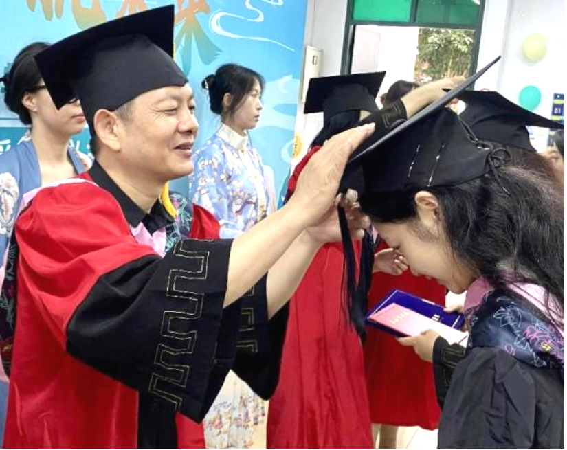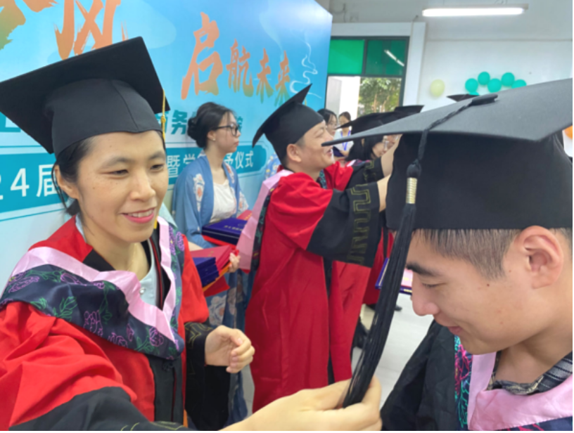 2024届毕业生学士学位授予仪式在庄重而温馨的气氛中隆重开启。学院领导与各专业教师代表们亲手为外院毕业生拨穗正冠,颁发证书,同时送上真挚的毕业祝福。