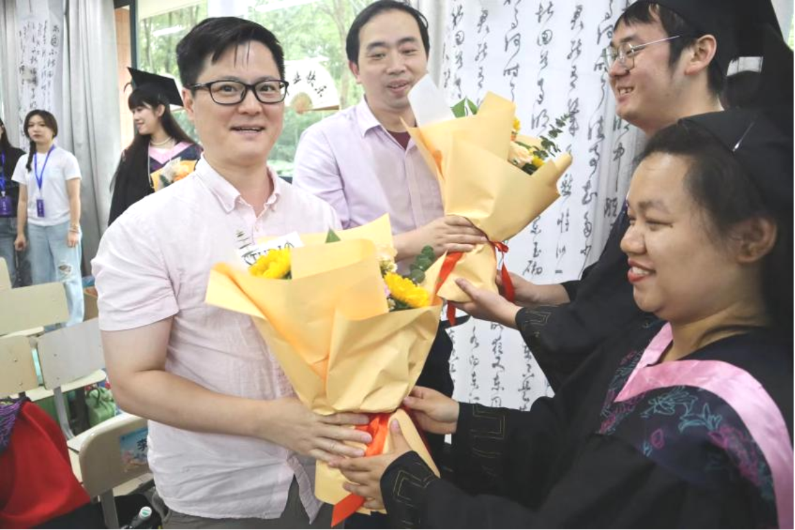 毕业生代表们手捧鲜花,向辛勤耕耘的老师们献上最诚挚的敬意和感谢