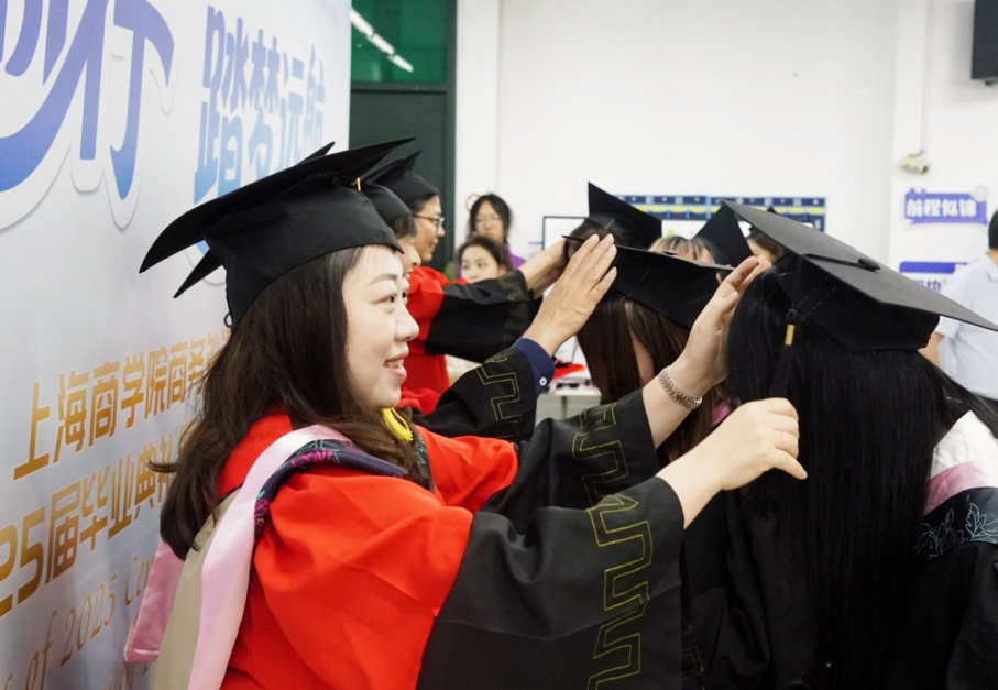 最激动人心的时刻当属学士授予仪式。学院领导与各专业教师代表依次为 毕业生拨穗正冠,颁发学士学位证书,并送上最真挚的祝福。当流苏从右拨到左,象征着毕业生们学业有成,即将开启人生新旅程。