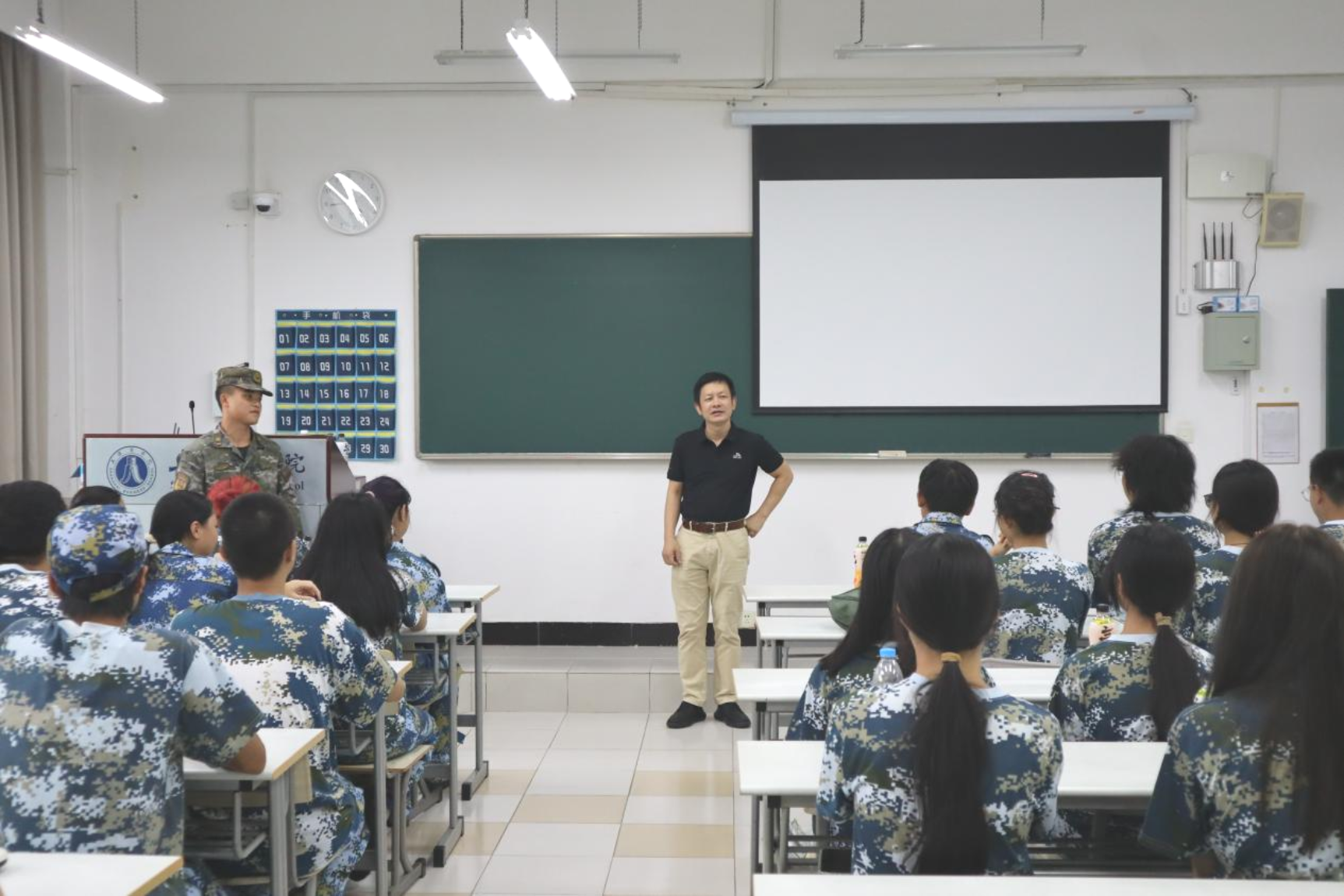 巾帼不惧疾风,少年笑对骤雨,商务外语学院2024级新生军训正如火如荼地进行。他们用汗水浇灌青春,以坚韧不拔的意志,书写着属于自己的辉煌篇章。学院领导代表学院送上慰问品,为军训中的新生送去清凉与温暖。一杯杯解渴的饮料,一句句鼓励的话语,如同秋风拂面,让新生们在疲惫中感受到温暖与关爱。段俊晖院长代表学院向精心组织军训工作、在训练过程中给予悉心指导的教官们致以诚挚的谢意,对2024级新生在炎炎烈日、疾风骤雨天气中展现出坚韧不拔、积极向上的精神风貌给予高度的评价。军训,作为大学生生涯中不可或缺的一课,不仅是塑造爱国主义情怀与坚定理想信念的熔炉,更是磨砺意志、锤炼品格的宝贵经历。段俊晖院长借此勉励新生,在接下来的日子里,要持续发扬不畏艰难、勇于挑战的精神,将军训中自律自强的品质,深植于心,并贯穿于未来的大学生活乃至整个人生的旅程中。