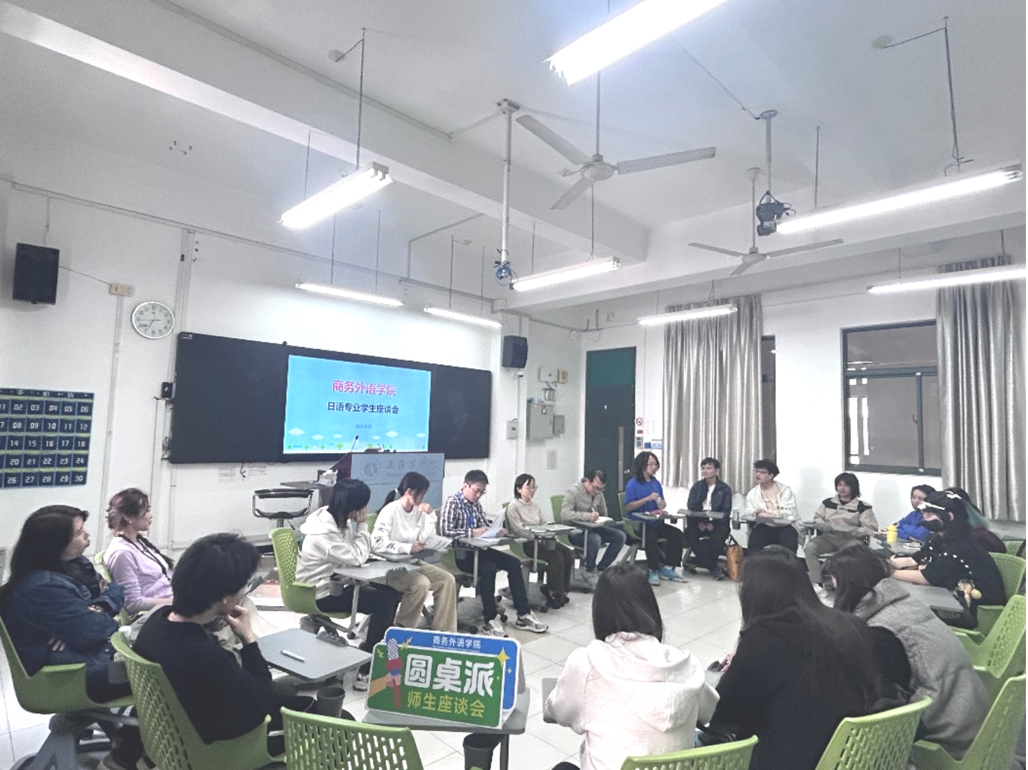在轻松和谐的氛围中,学生们积极踊跃地发言,纷纷就自身在学习和生活中遇到的问题提出了许多中肯且富有建设性的意见和建议。学生反映的问题主要集中在课程与活动方面:一方面,部分课程授课时间过于集中,某些课程开设班级数量不够满足学生需求;另一方面,现有的日语活动形式较为有限,这些都在一定程度上影响了学生的学习效果和学习积极性。针对学生们提出的问题,与会的教师们认真倾听并记录,展现出对学生成长的高度重视和责任感。日语系主任方飞卡表示,学生们的反馈非常宝贵,这些建议将为日语系优化教学安排、丰富课程资源、改进人才培养方案提供重要依据。
