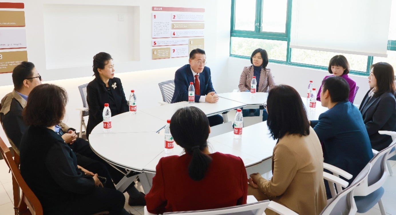 在讲座正式开始前,权起植教授与商务外语学院的领导及教师代表进行了亲切的座谈。商务外语学院书记余绘萍、院长段俊晖、副院长白莲花以及朝鲜语系的教师代表们热情接待了权教授,双方就中韩关系的现状、未来发展及学术交流等议题进行了深入的探讨和交流,并对今后朝鲜语系和东亚研究中心的发展交流了意见。